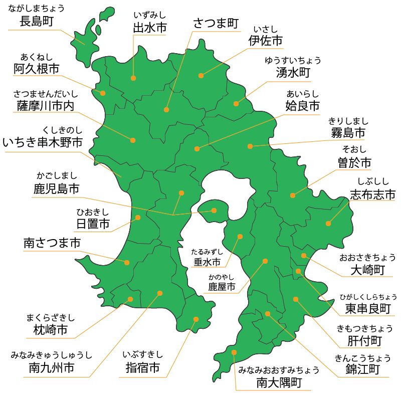かごんま県は、日本ん九州地方に位置すっ県じゃ。