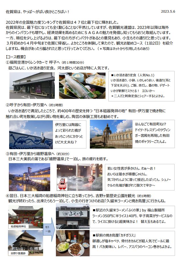 佐賀観光お勧めコースは、HP国内旅行の特派員報告と