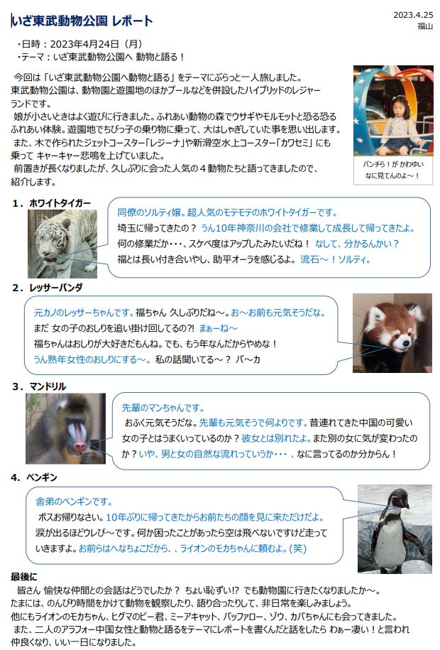 「動物と語る」 とても斬新で面白い企画ですね。